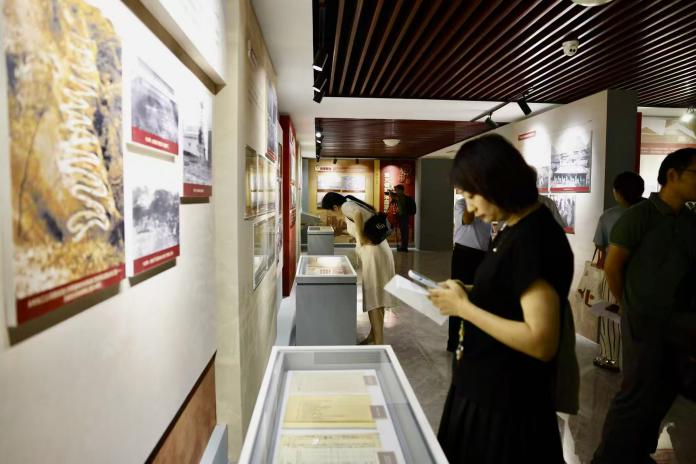 展覽共設(shè)四個(gè)篇章:開埠興業(yè)、救亡圖存;烽火礪劍、浴血堅(jiān)守;革故鼎新、百業(yè)奮進(jìn);薪火相傳、踔厲奮發(fā)。本次展覽85%的檔案是首次對外公開,例如金陵兵工廠、江南造幣廠、永利铔廠、中央無線電器材廠等企業(yè)的檔案。還首次展出了周恩來、朱德等為范旭東題寫挽聯(lián)的存根檔案。1945年10月6日,重慶《新華日報(bào)》報(bào)道了愛國實(shí)業(yè)家范旭東逝世的消息,周恩來代表毛澤東親往吊唁寫下挽聯(lián)。