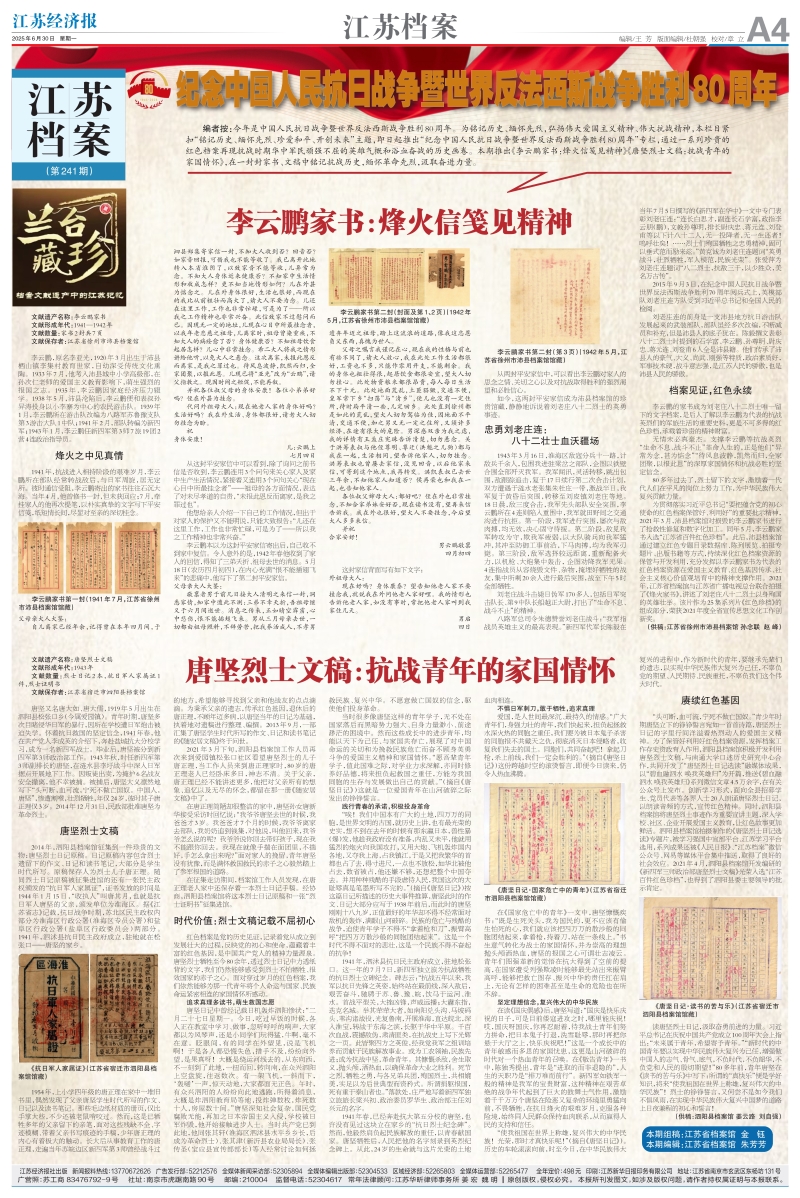 紀念中國人民抗日戰爭暨世界反法西斯戰爭勝利80周年|《江蘇檔案》特刊第241期
