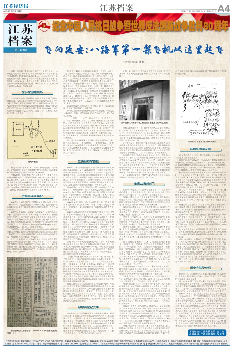 飛向延安:八路軍第一架飛機從這里起飛|《江蘇檔案》特刊第242期
