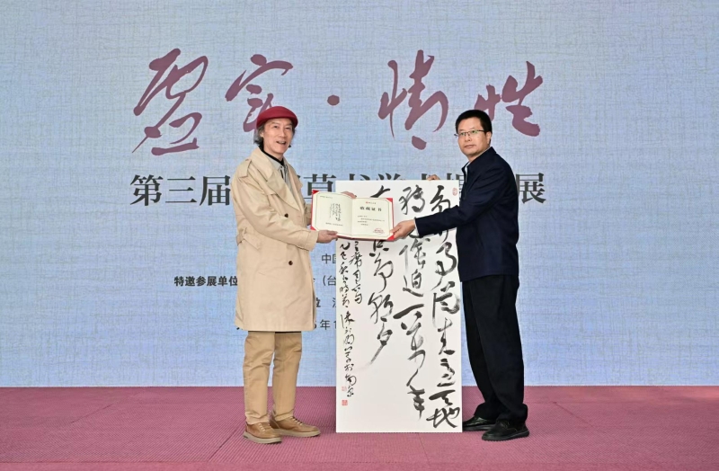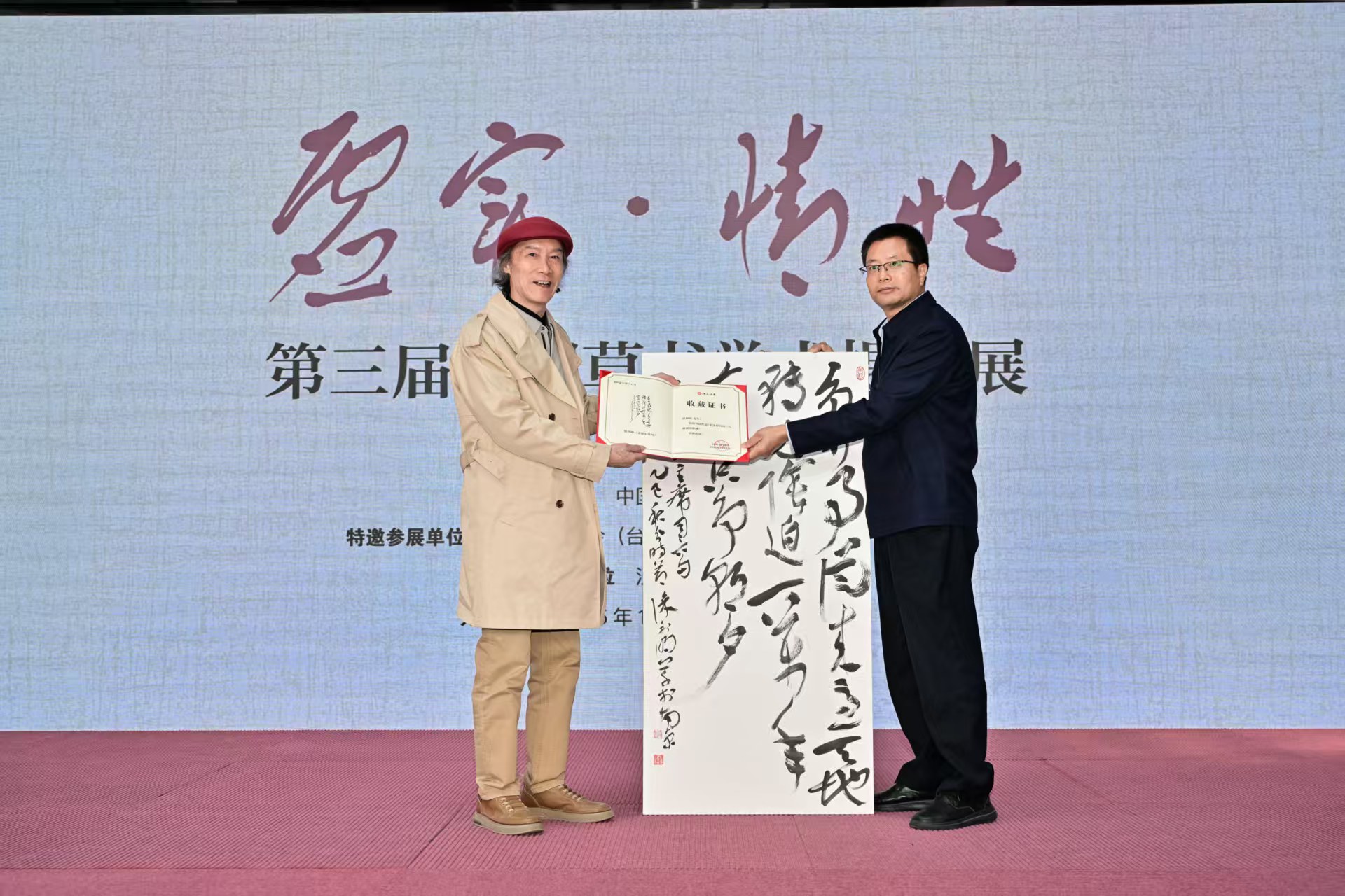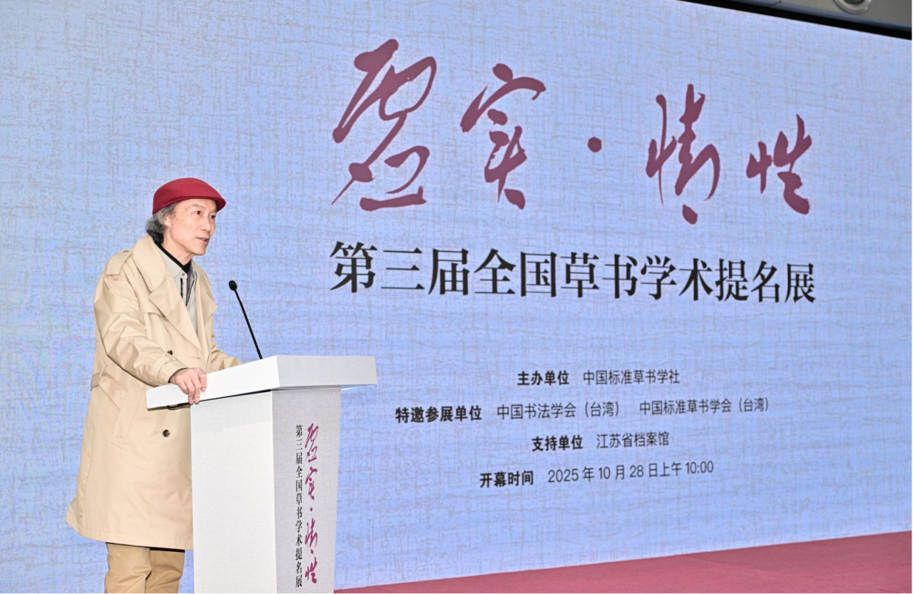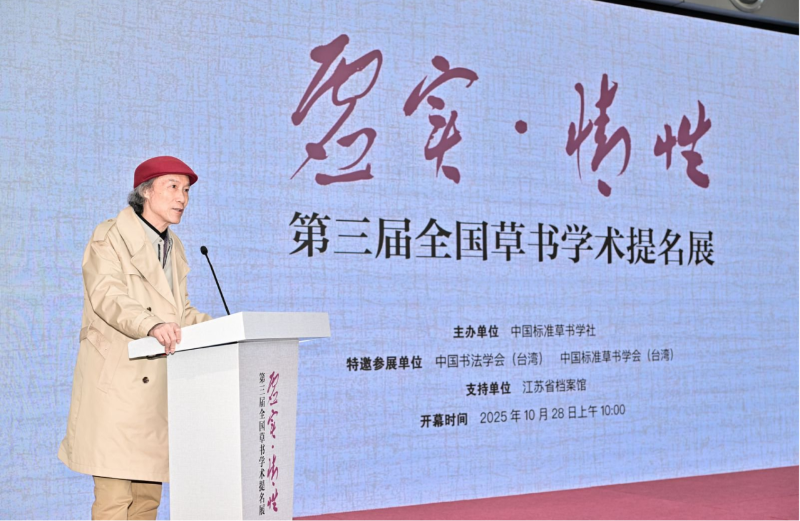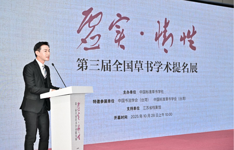 來自中國臺灣的簡名偉(南京云錦博物館館長)表示,書法藝術(shù)乃中華民族之瑰寶,此次全國草書學(xué)術(shù)提名展的舉辦,為兩岸書法家搭建了珍貴的交流平臺,讓大家能在筆墨的流轉(zhuǎn)間感受中華文化的博大精深,增進(jìn)感情。未來期待與中國標(biāo)準(zhǔn)草書學(xué)社及兩岸各界加強(qiáng)合作,共同推動書法藝術(shù)的傳承與創(chuàng)新,讓標(biāo)準(zhǔn)草書作為獨(dú)特的文化載體,為增進(jìn)兩岸同胞的文化認(rèn)同和情感聯(lián)結(jié)注入更多正能量。
