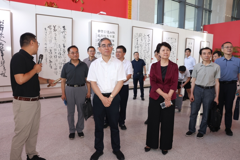開展儀式上,顧俊、常勝梅、劉春灝共同為展覽揭幕,顧俊、劉春灝、韓軍以及書畫名家代表張磊、譚雷鳴分別致辭。開展儀式結束后,現場嘉賓共同參觀了展覽。